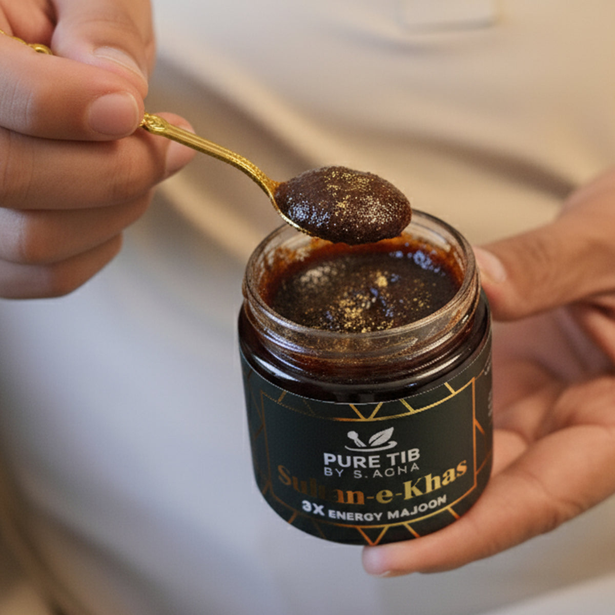 Sultan-e-Khas Majoon for Male Strength – Natural Vitality & Stamina Booster Rediscover your inner strength with our powerful Majoon for Male Strength – a traditional herbal blend crafted to naturally support energy, vitality, and endurance. Formulated using time-tested Unani ingredients, this potent remedy is designed to enhance male performance, improve stamina, and support overall reproductive wellness.